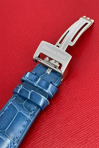 Strap: Blue alligator strap with Stainless Steel Audemars Piguet deployant clasp