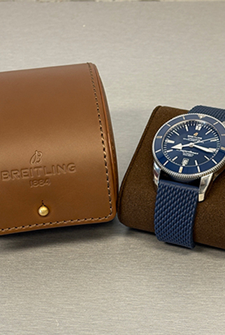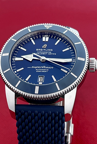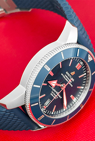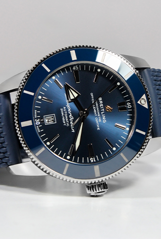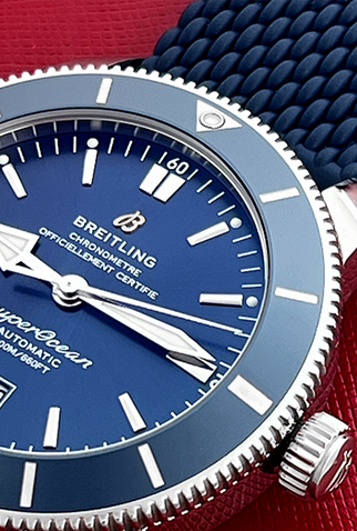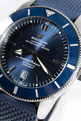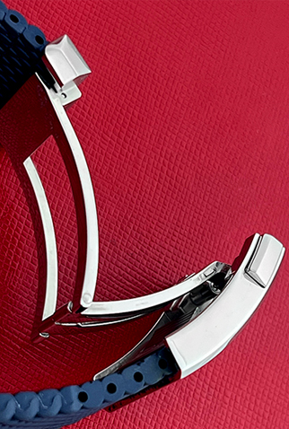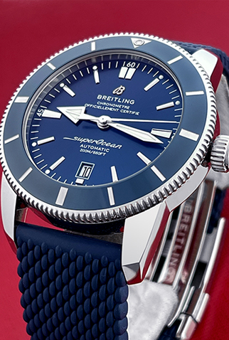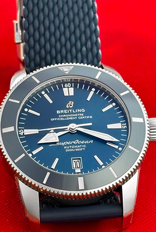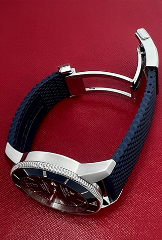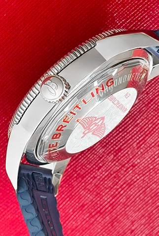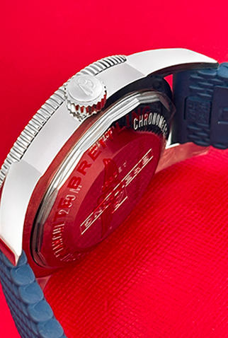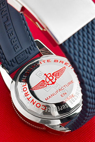 Strap: Blue rubber Breitling strap with Stainless Steel Breitling