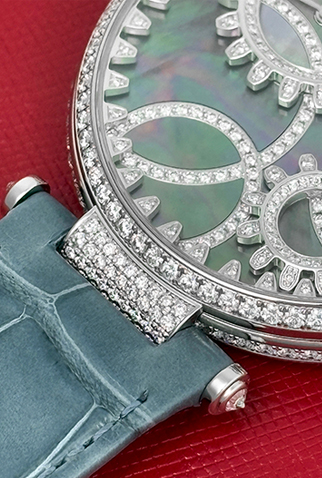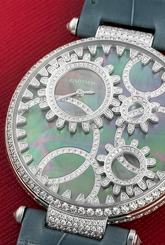 Dial: Tahitian Mother of pearl dial with Diamond gears