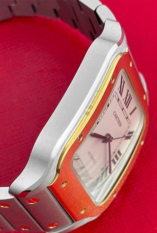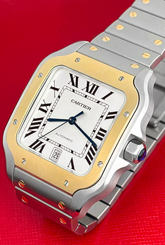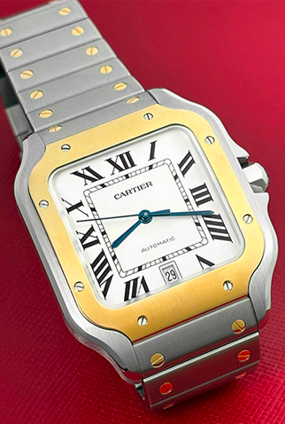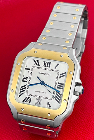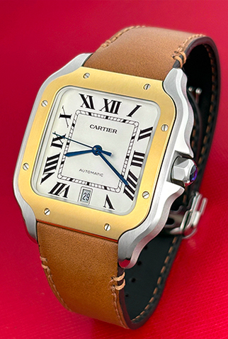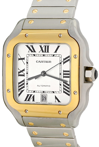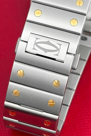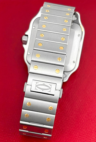 Bracelet: Stainless Steel & 18k Yellow Gold Santos style bracelet with deployant buckle