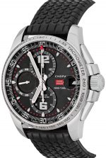 Strap: Black rubber tire pattern tread strap with Stainless Steel Chopard deployant clasp