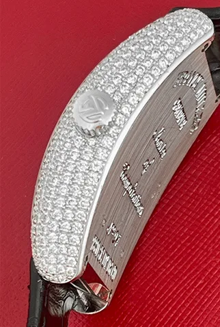 Case Material: 18k White Gold Diamond Pave rectangular tonneau style case (39x50mm)