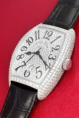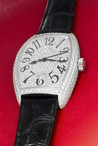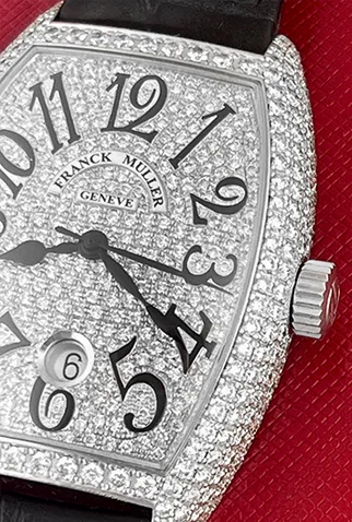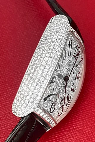 Strap: Black alligator strap with 18K white Gold & Diamond Franck Muller buckle