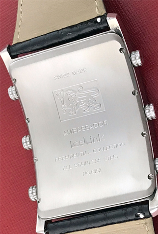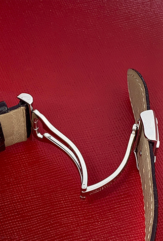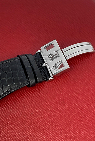 Strap: Black alligator strap with Stainless Steel IceLink deployant clasp