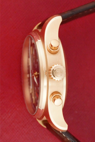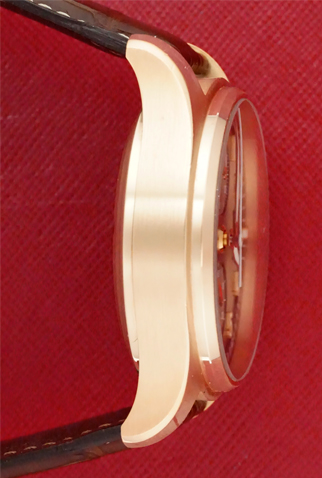 Case Material: 18k Rose Gold round waterproof style case (43mm dia.). 60 Meters – 195 Feet