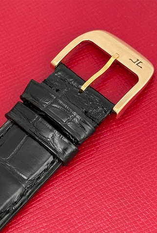 Strap: New JLC black alligator strap with 18k Rose Gold Jaeger-LeCoultre buckle