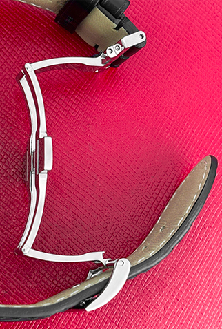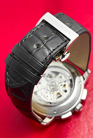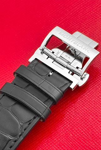 Strap: Black alligator pattern strap with Stainless Steel Montblanc deployant clasp