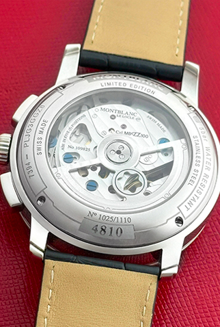 Movement Details: MontBlanc Chronograph Calibre MB LL 100.1 Automatic Winding Movement with Thirty-Six Jewels and a 72-hour power reserve