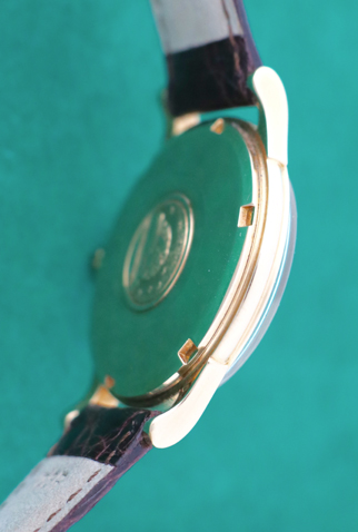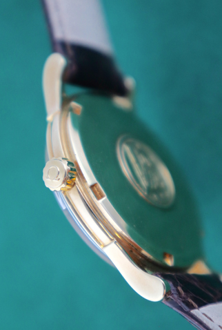 Case Material: 18k Yellow Gold round style case with Observatory logo on back (34mm dia.)