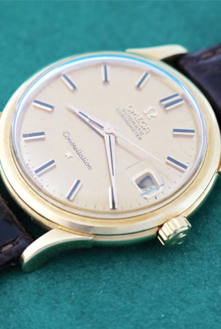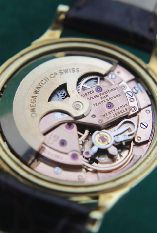 Strap: Dark alligator strap with yellow gold filled Omega buckle