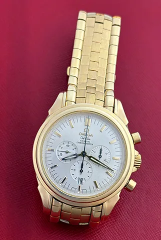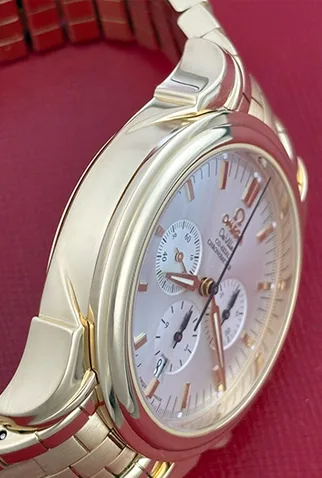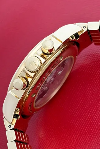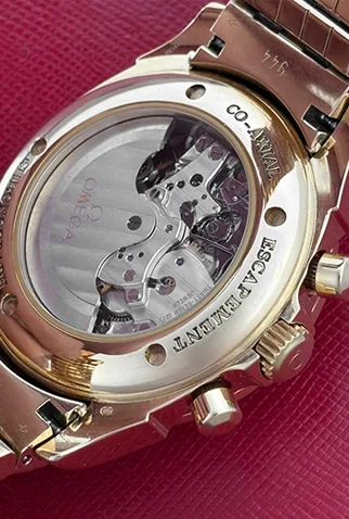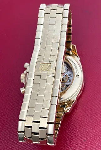 Case Material: Heavy 18k Yellow Gold case with exposition back to view movement (41mm dia.). Water-Resistant to 100 Meters – 330 Feet