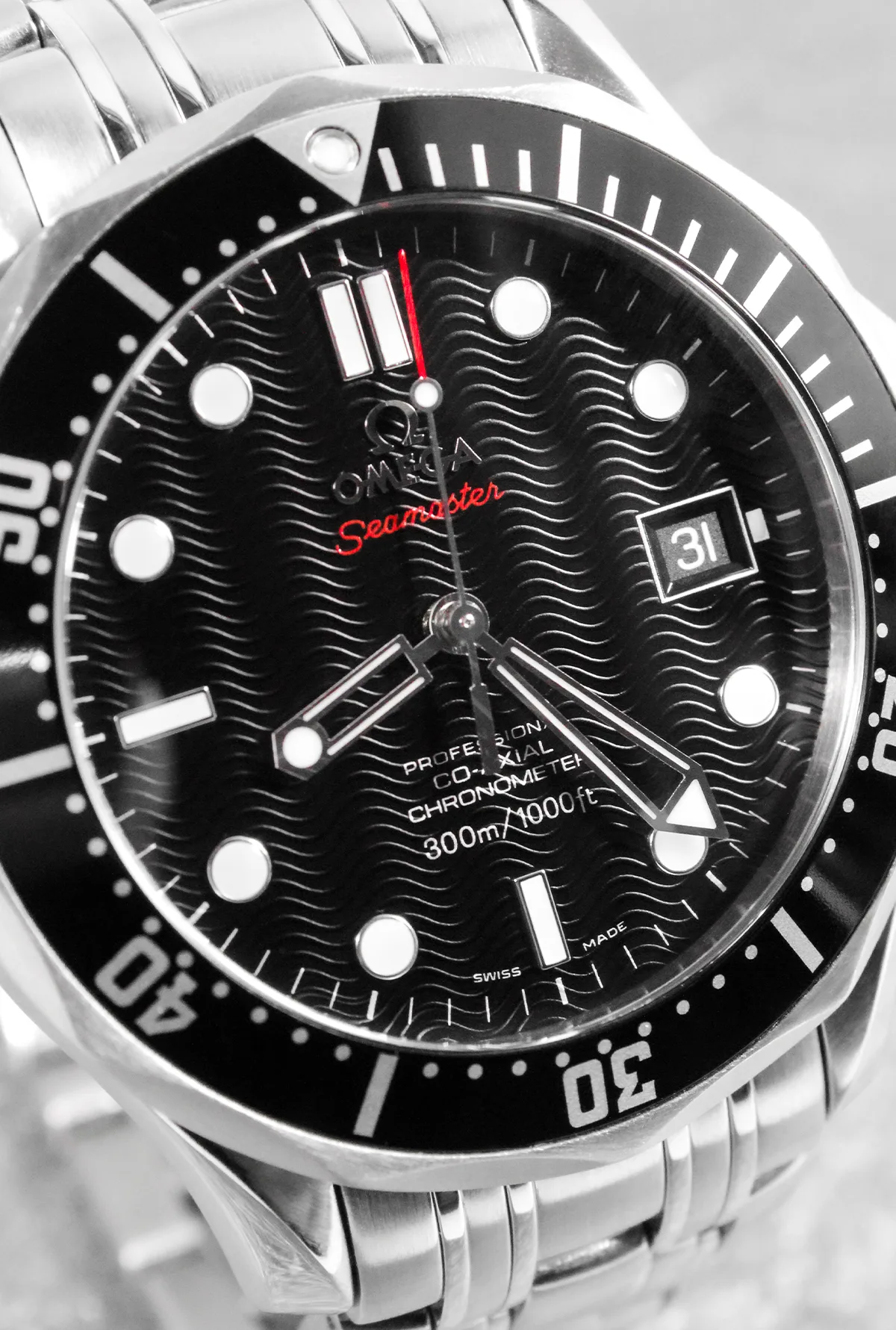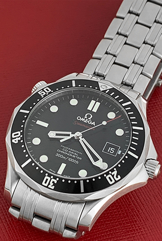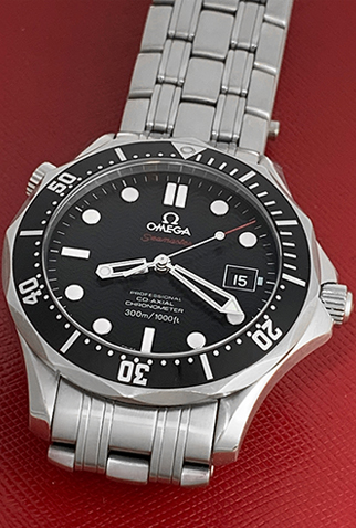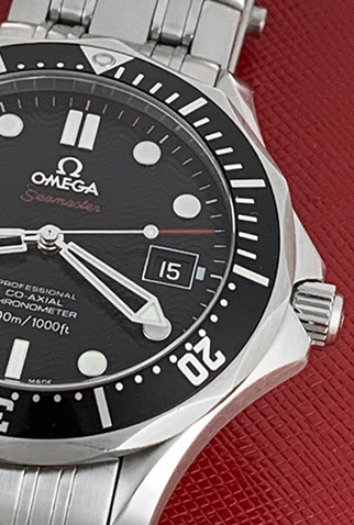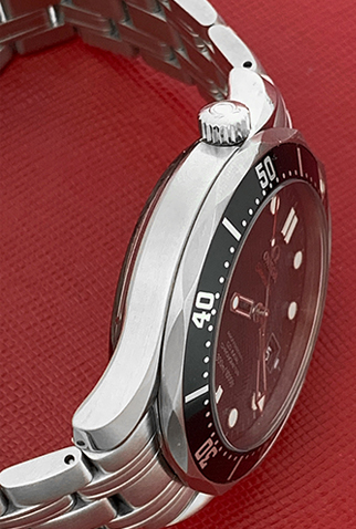 Case Material: Stainless Steel case with Black Bezel and Helium Release Valve (41mm dia.). Water-Resistant to 300 Meters