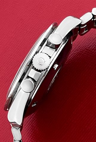 Case Material: Stainless Steel waterproof style case with black Tachymetre bezel (41mm dia.)