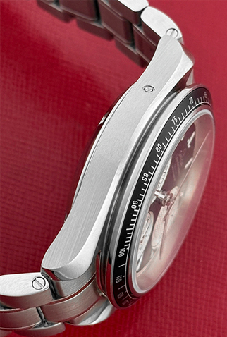 Case Material: Stainless Steel case with Tachymetre Bezel (40mm diam). Water Resistant to 10 bar (100 metres/330 ft).