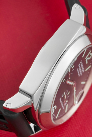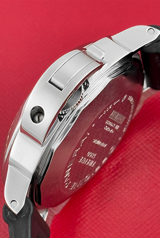 Case Material: Polished stainless steel waterproof style case with lock-down winding crown (44x53mm)