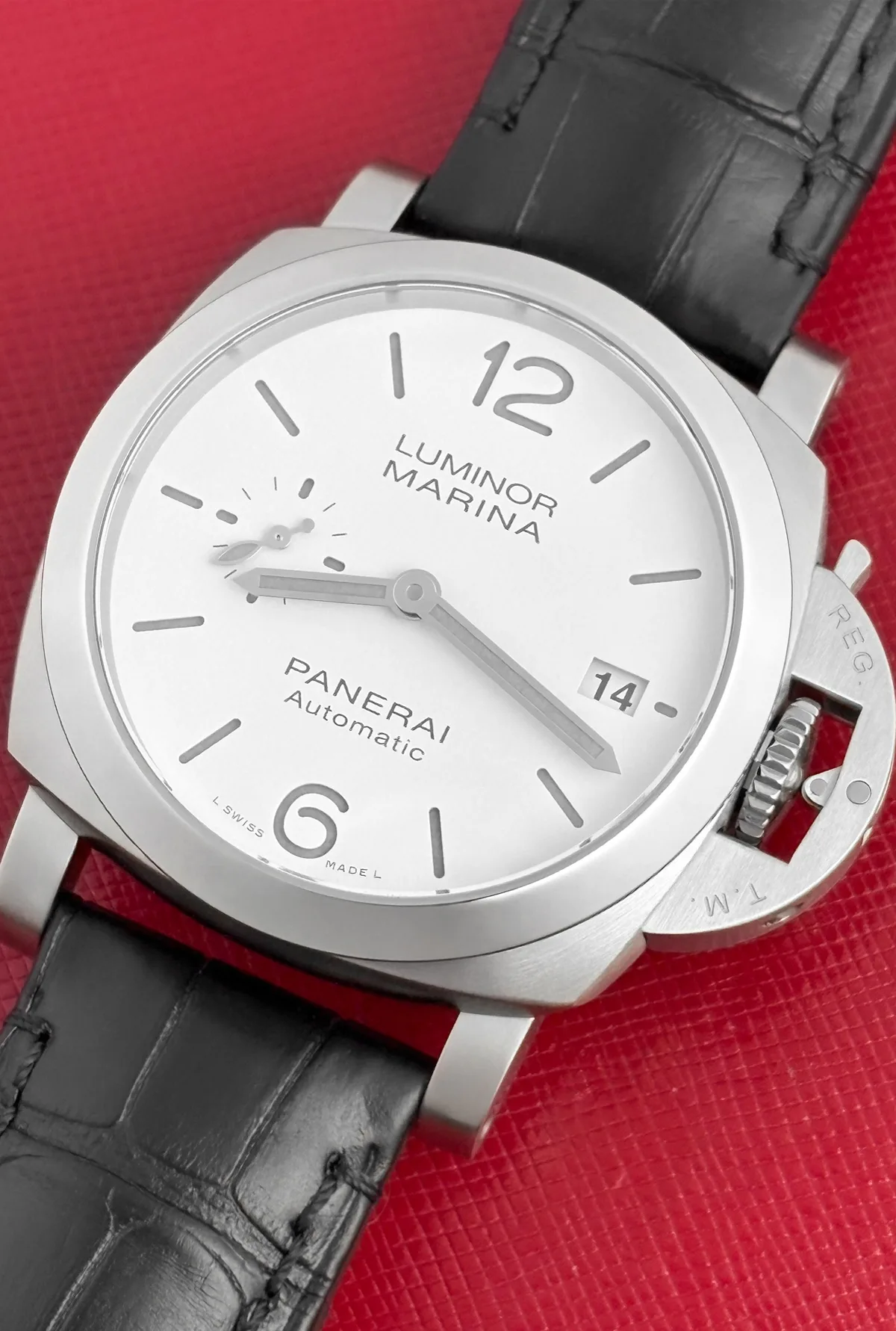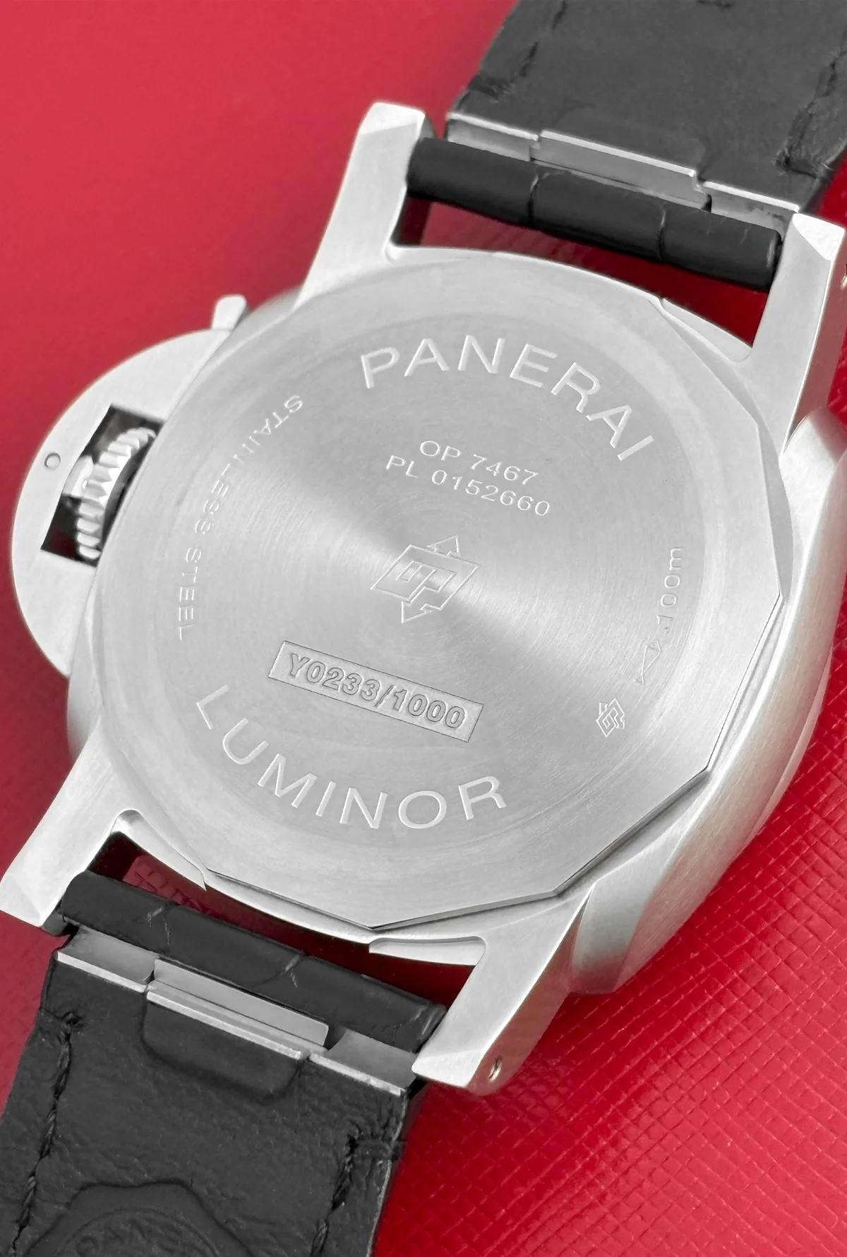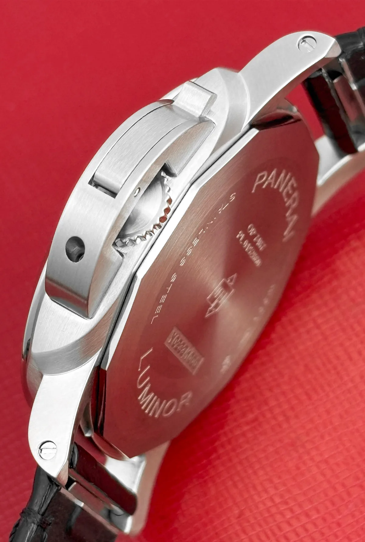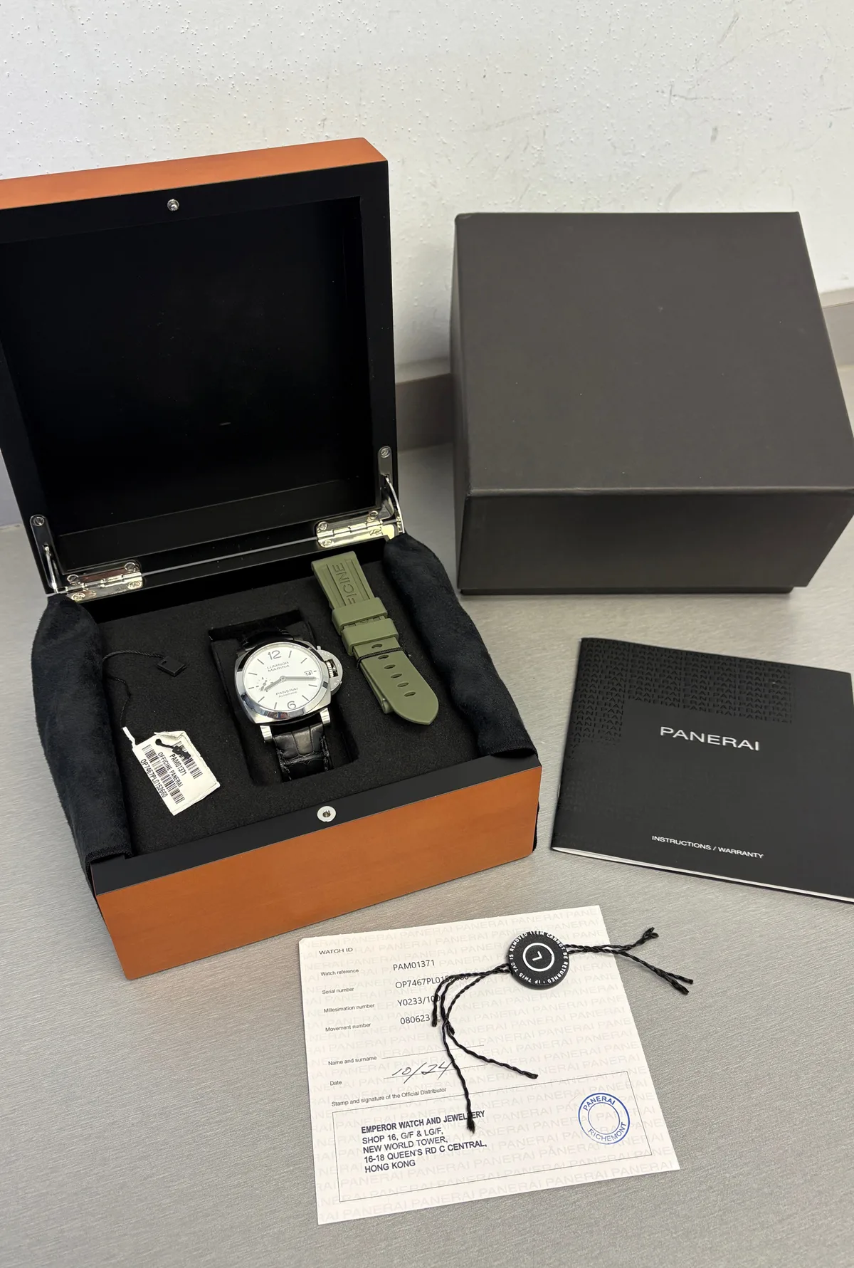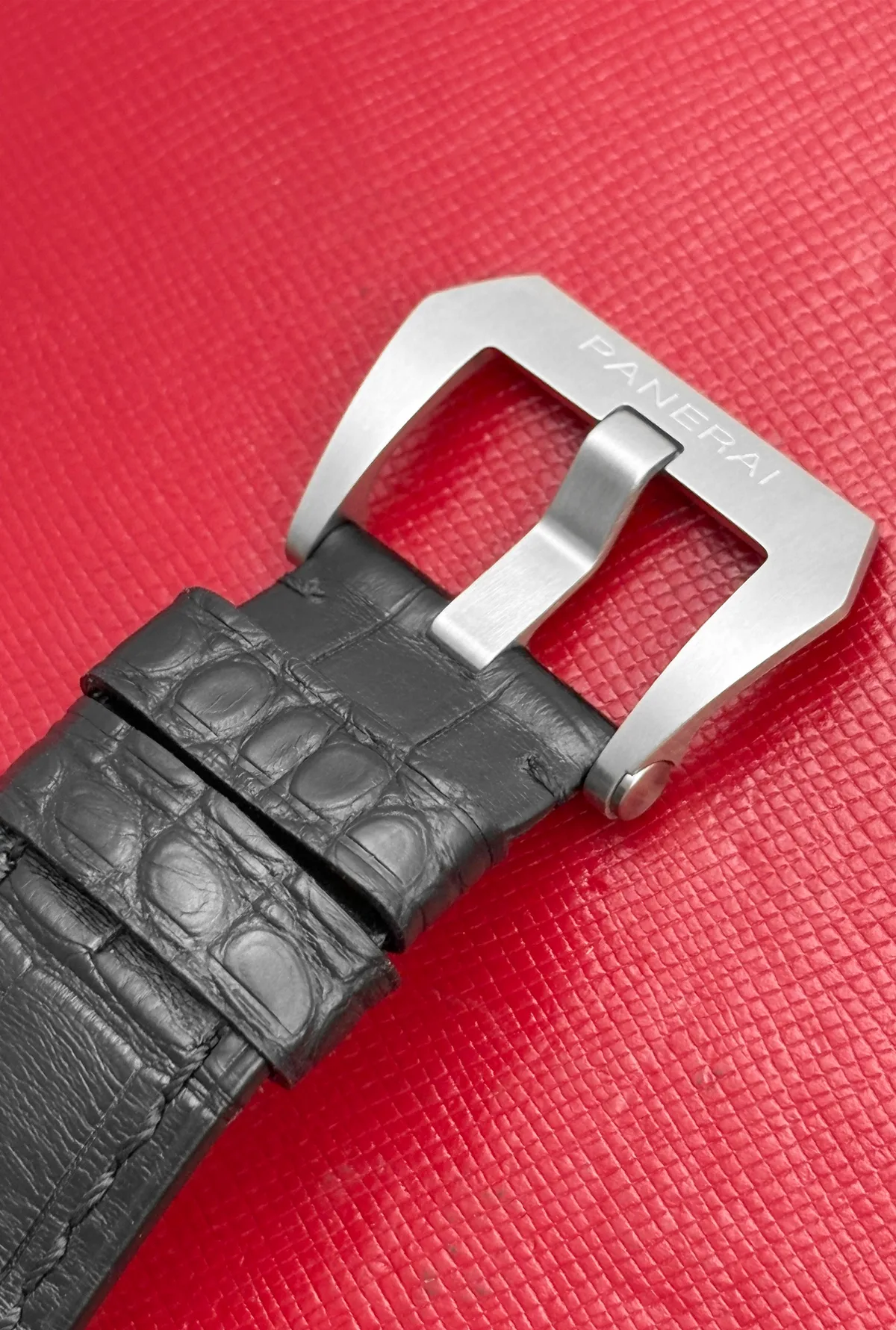 Strap: Black alligator strap with with Stainless Steel Panerai buckle. Note: Extra Panerai green rubber strap also included