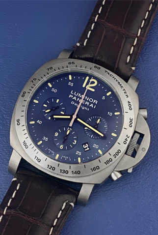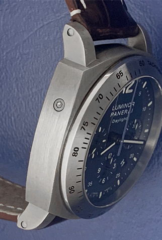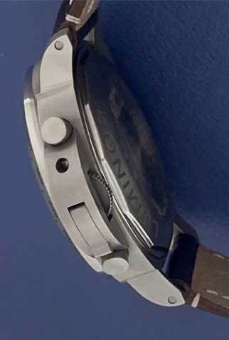 Case Material: Brushed Titanium waterproof style case with lock-down winding crown (44x54mm). Water-resistant to 300 meters