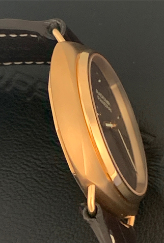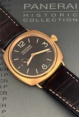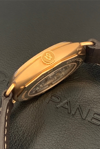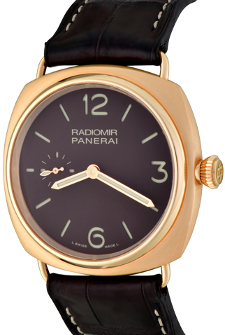 Strap: Chocolate brown alligator saddle-stitched strap with 18k Rose Gold Panerai buckle