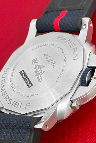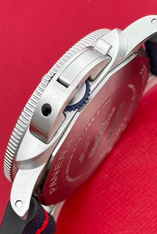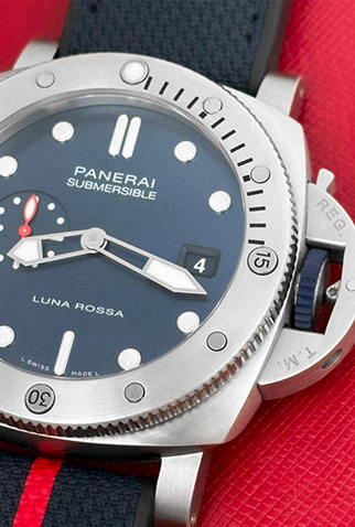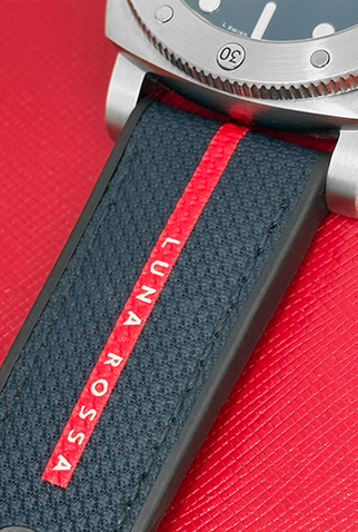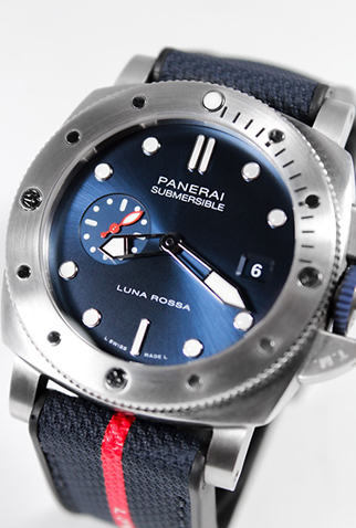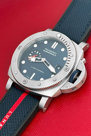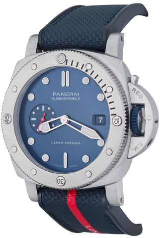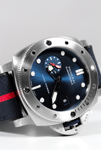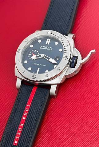 Strap: Black rubber Panerai strap signed “Luna Rossa” with Stainless Steel Panerai buckle
