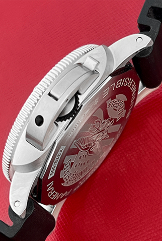 Strap: Black rubber Strap with Stainless Steel Panerai buckle. Note: Extra nylon camouflage Panerai and strap chaining tools included
