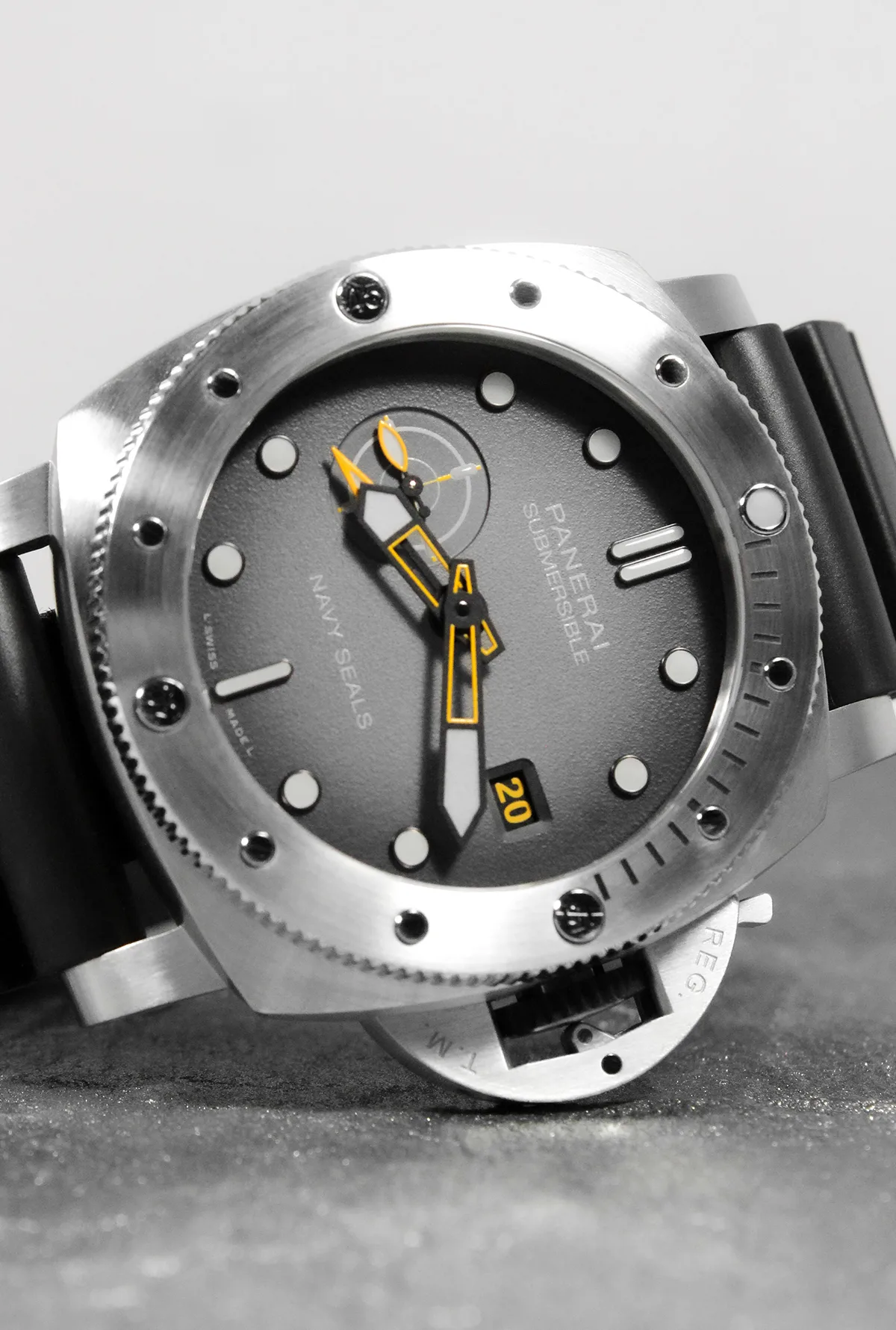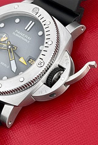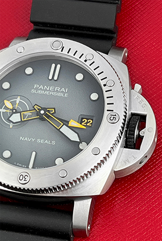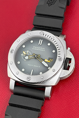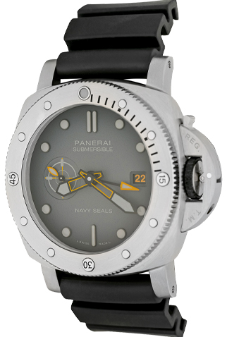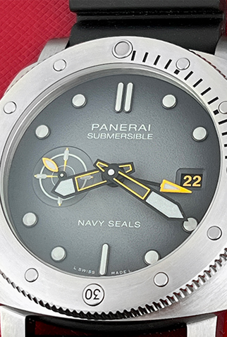Dial: Gray fade Dial with luminous hour markers signed “Panerai Submersible Navy Seals”