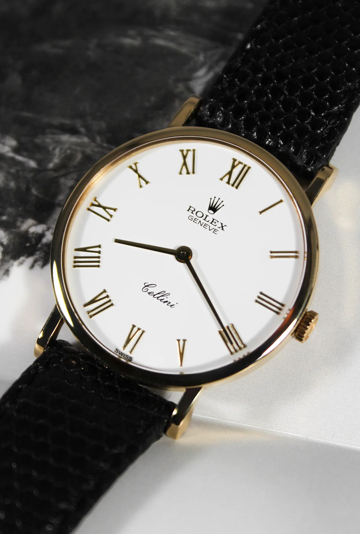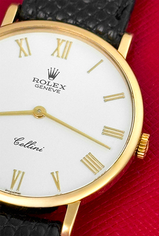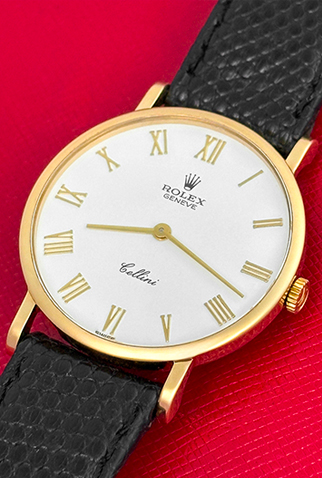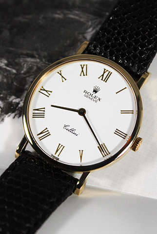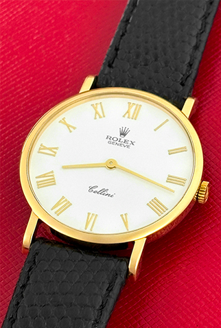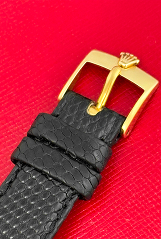 Strap: Black alligator strap with 18k Yellow Gold Rolex buckle
