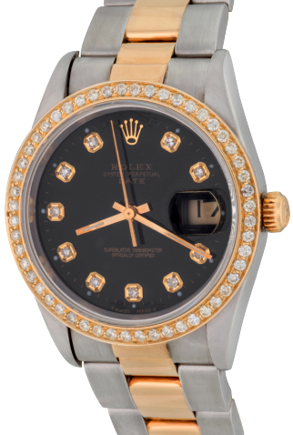 Case Material: Stainless Steel case with 18k Yellow Gold customs Diamond bezel (34mm dia.)
