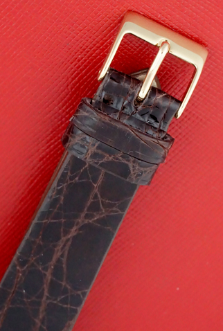 Strap: Dark brown alligator strap with yellow gold buckle
