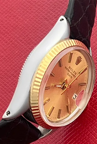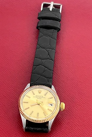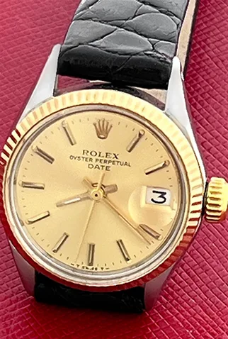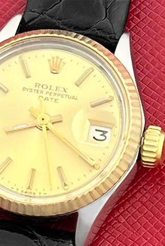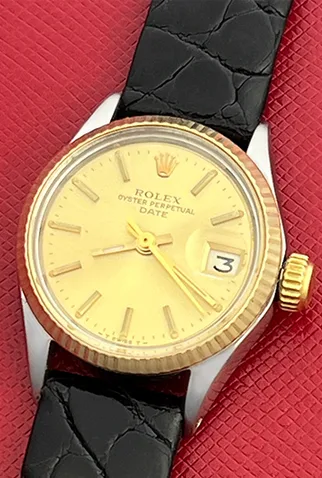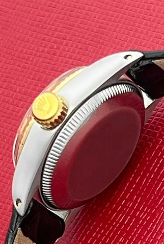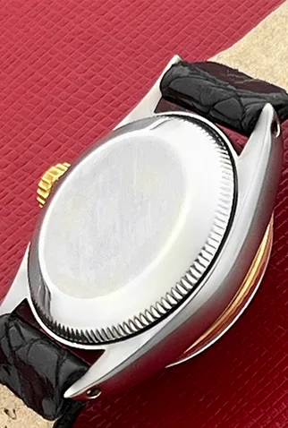 Case Material: Stainless Steel case with 14k Yellow Gold fluted bezel (26mm dia.)