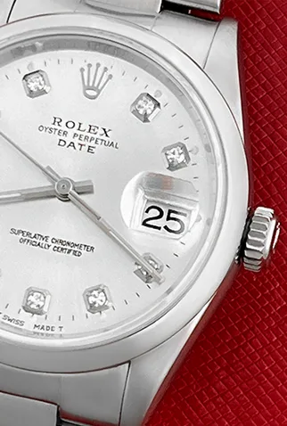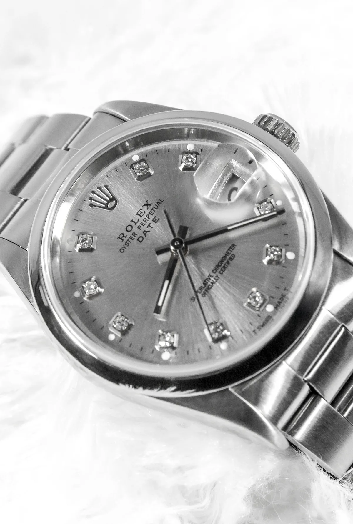 Dial: Oyster Silver Dial with custom Diamond hour markers