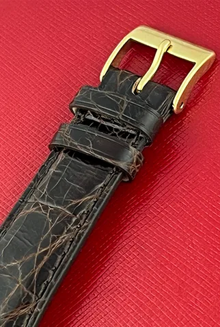 Strap: Dark brown alligator strap with yellow gold filled buckle