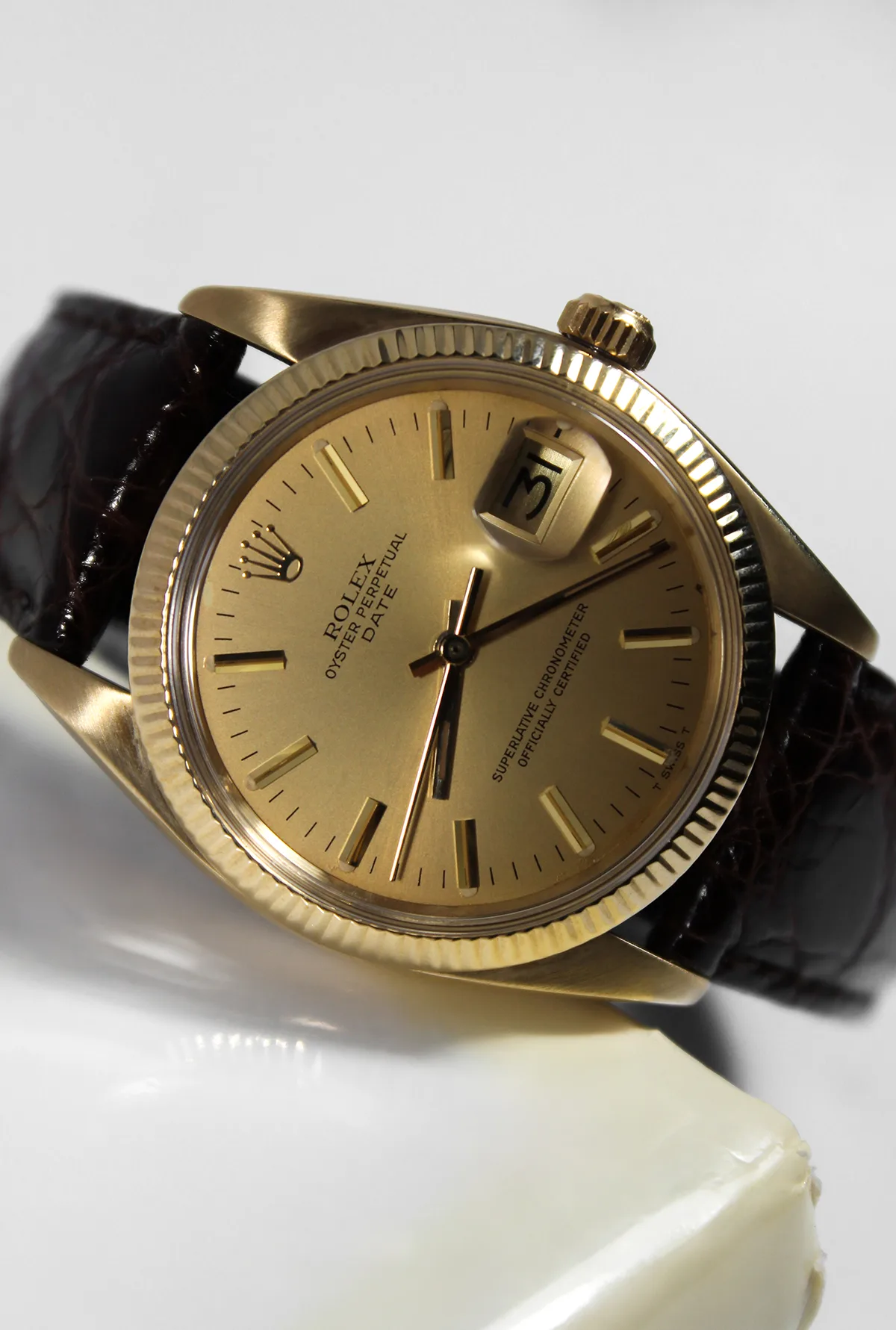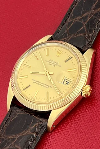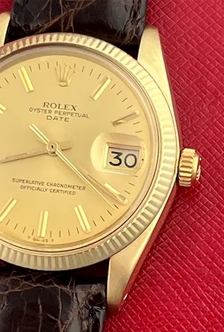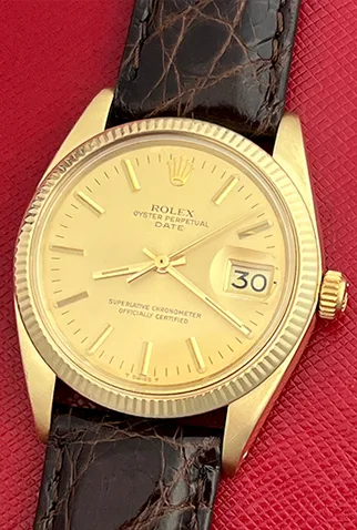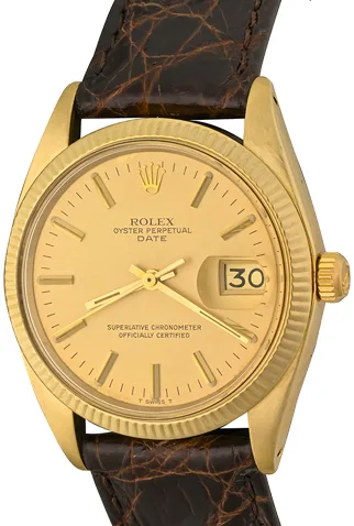 Case Material: 14k Yellow Gold case with fluted bezel (34mm dia.)