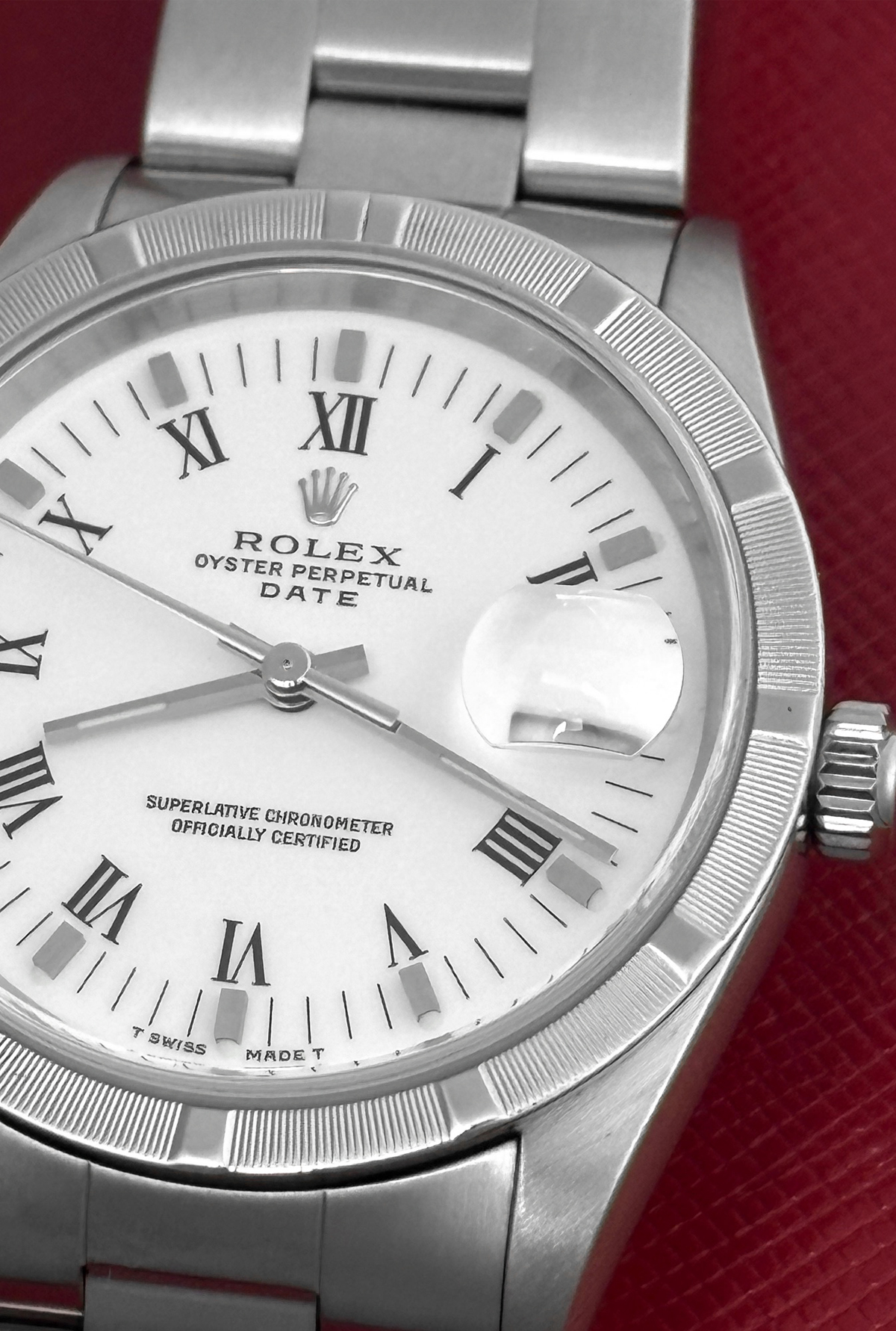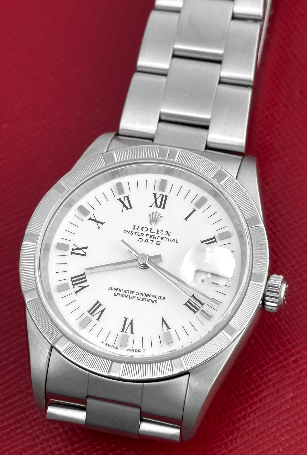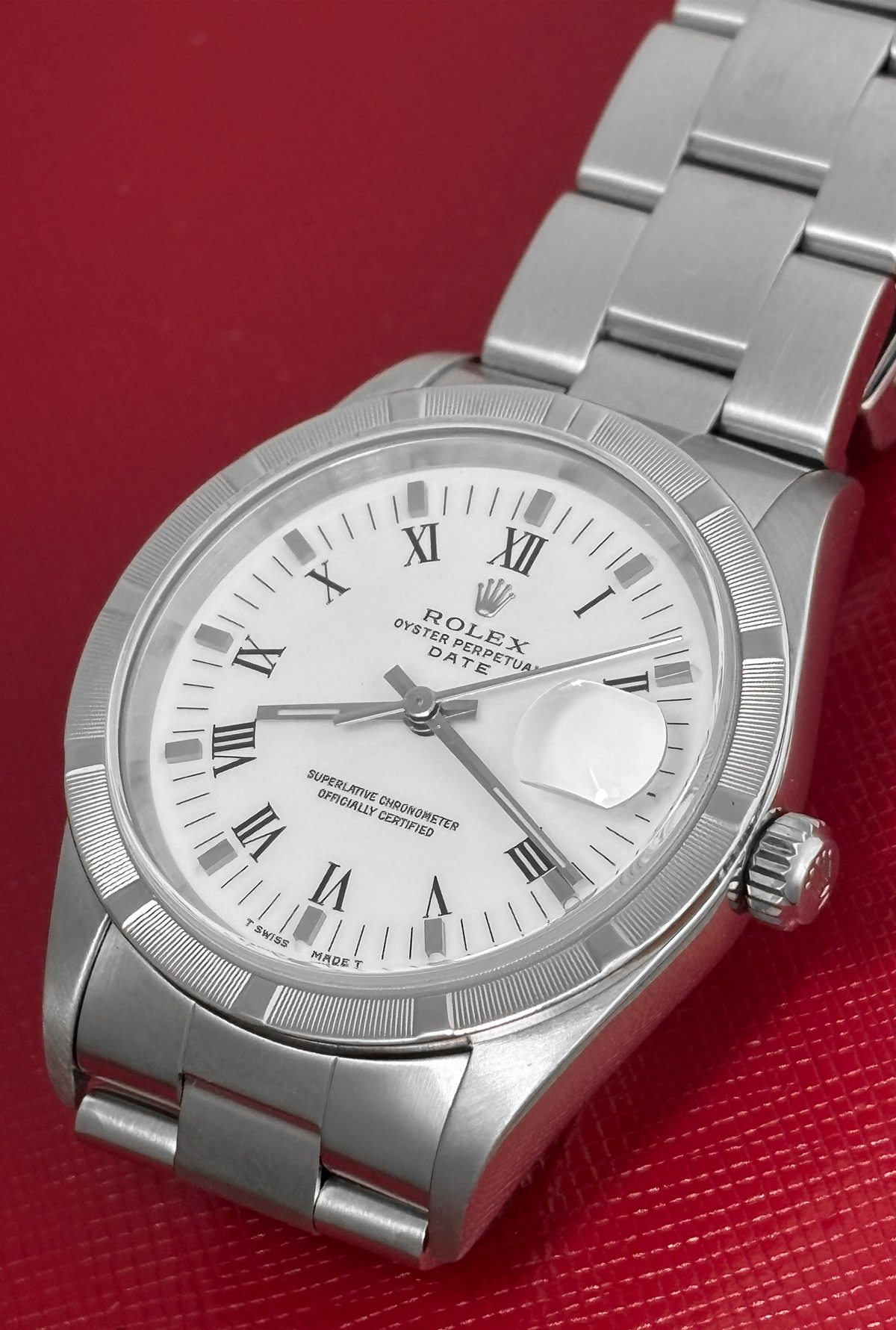 Case Material: Stainless Steel case with engine-turned bezel (34mm dia.)