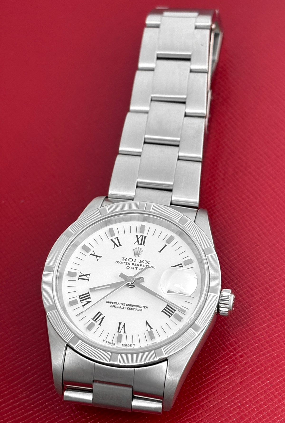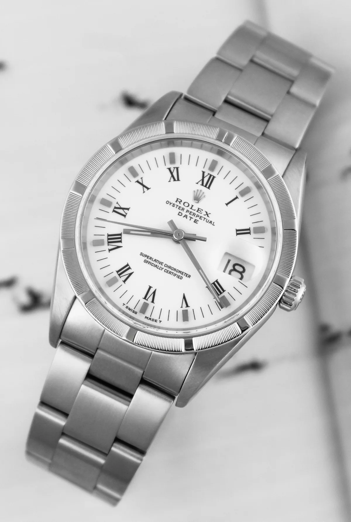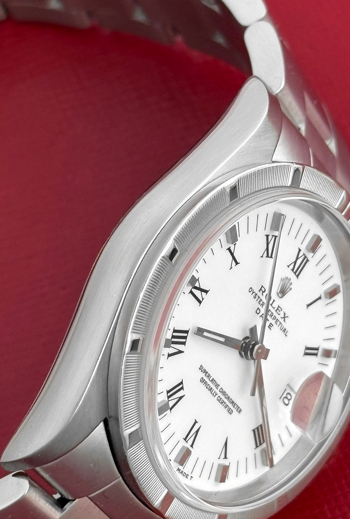 Case Material: Stainless Steel case with engine-turned bezel (34mm dia.)