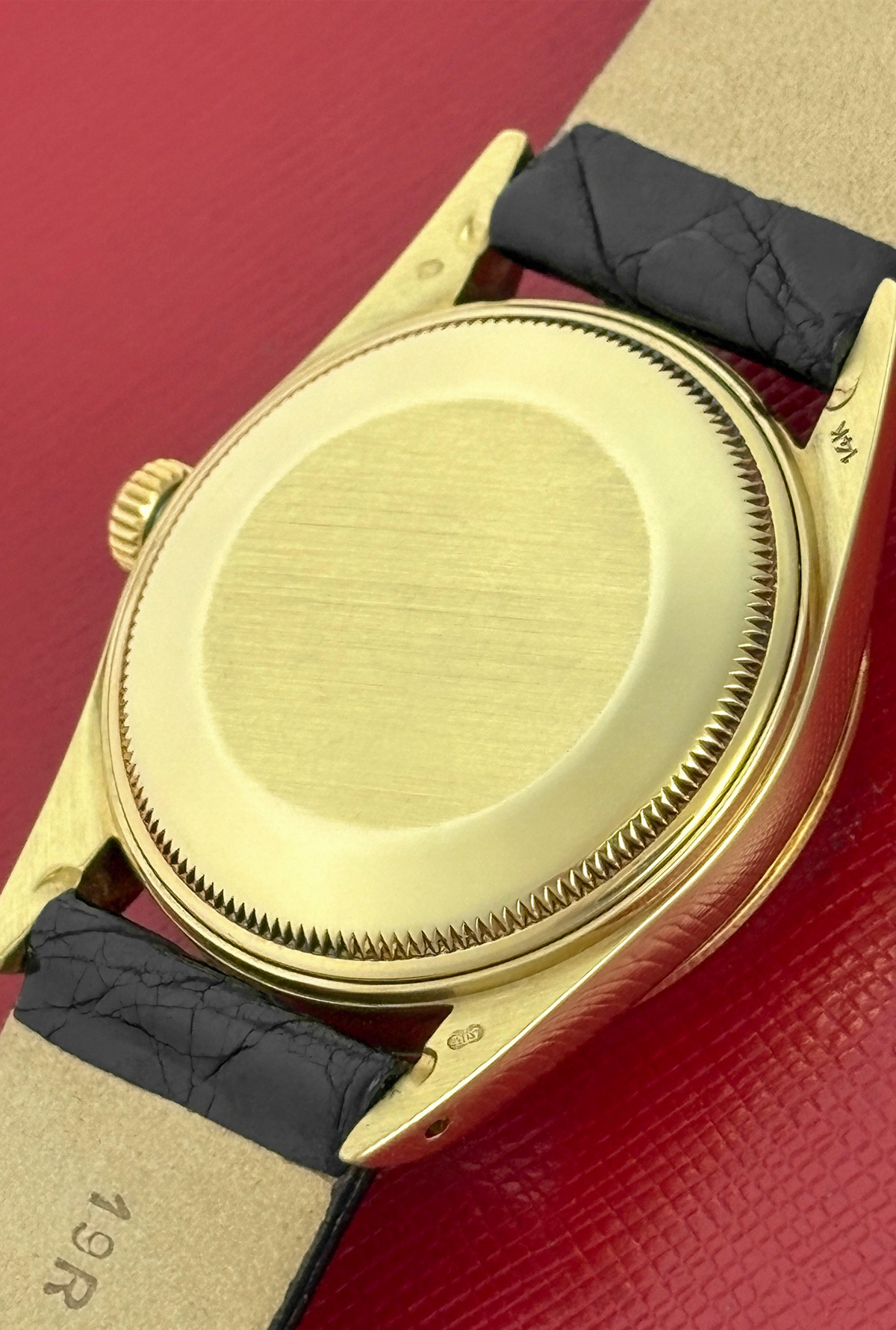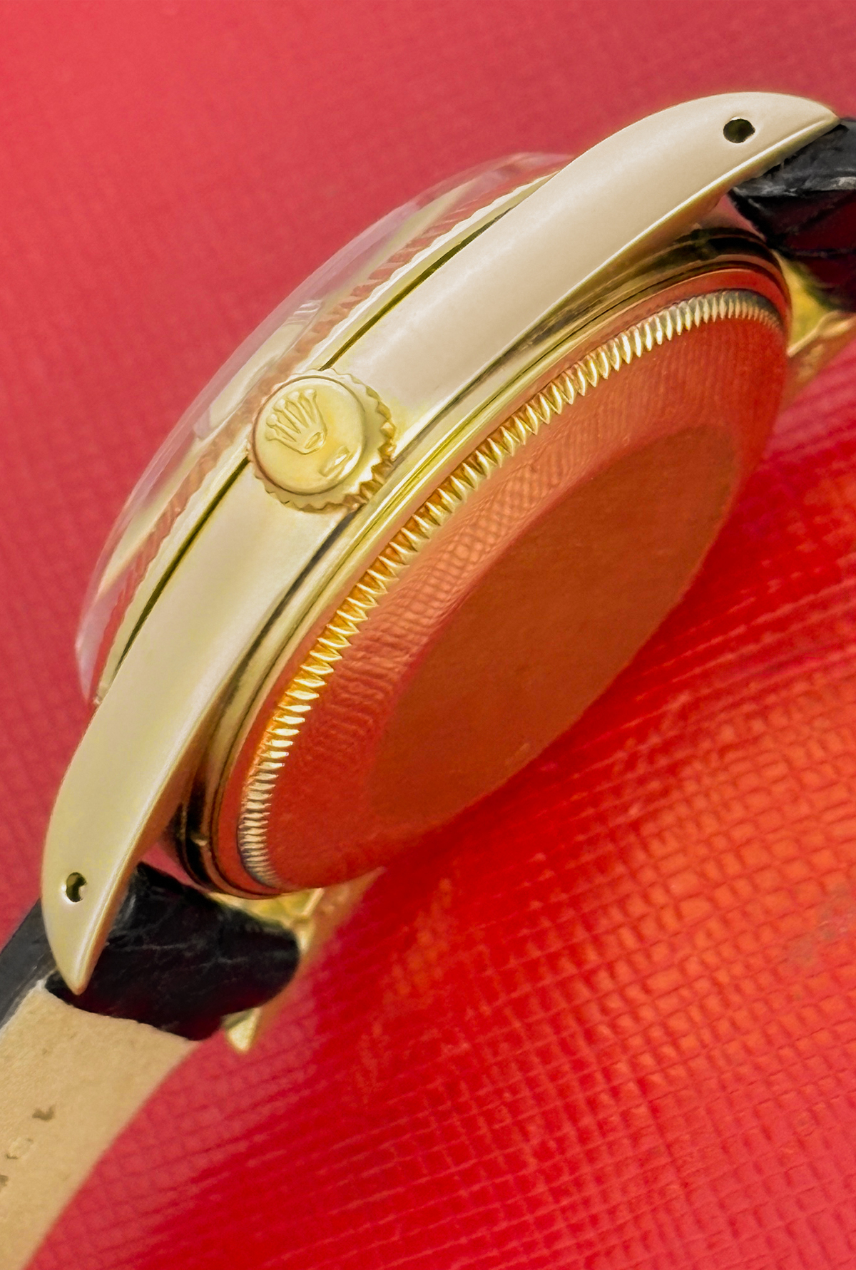 Strap: Black alligator strap with yellow gold-filled Rolex buckle