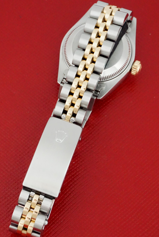 Case Material: Stainless Steel case with 18k Yellow Gold fluted bezel (26mm dia.)