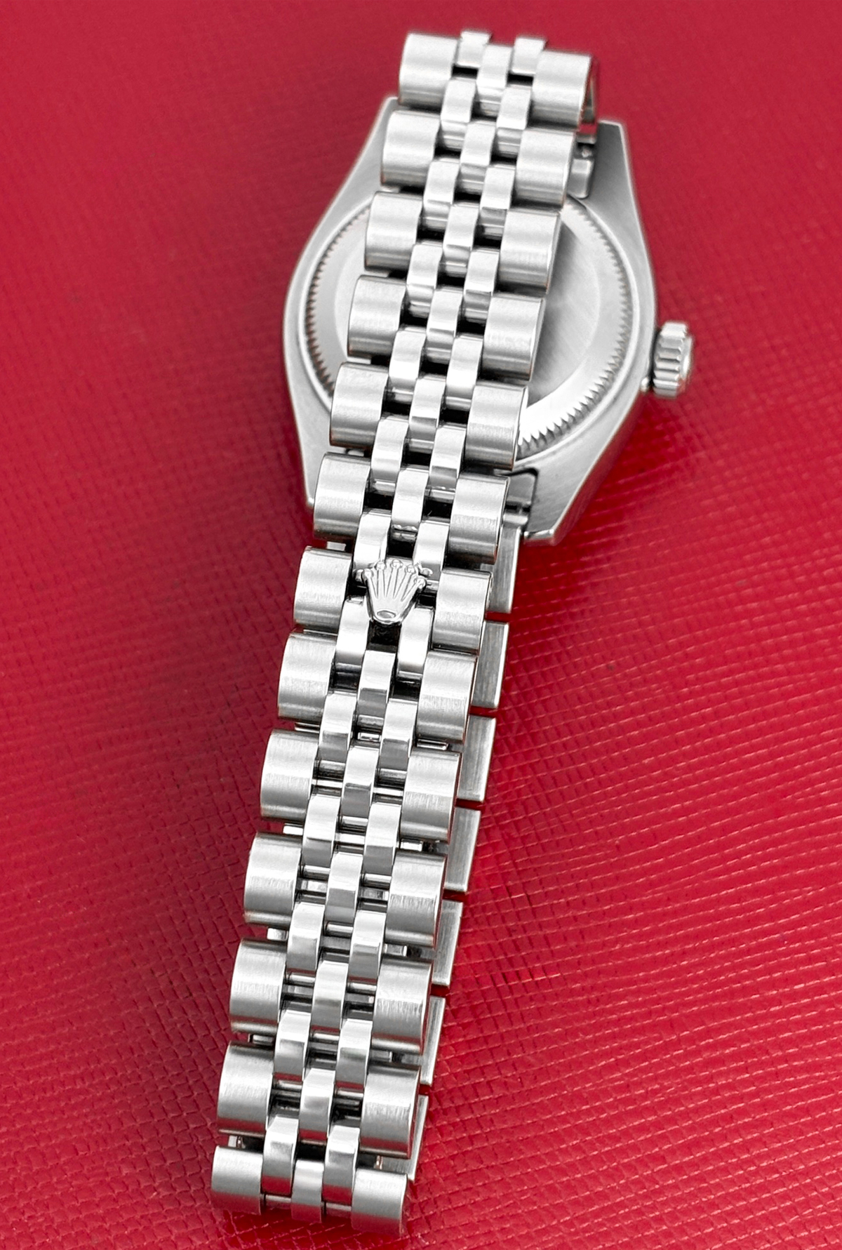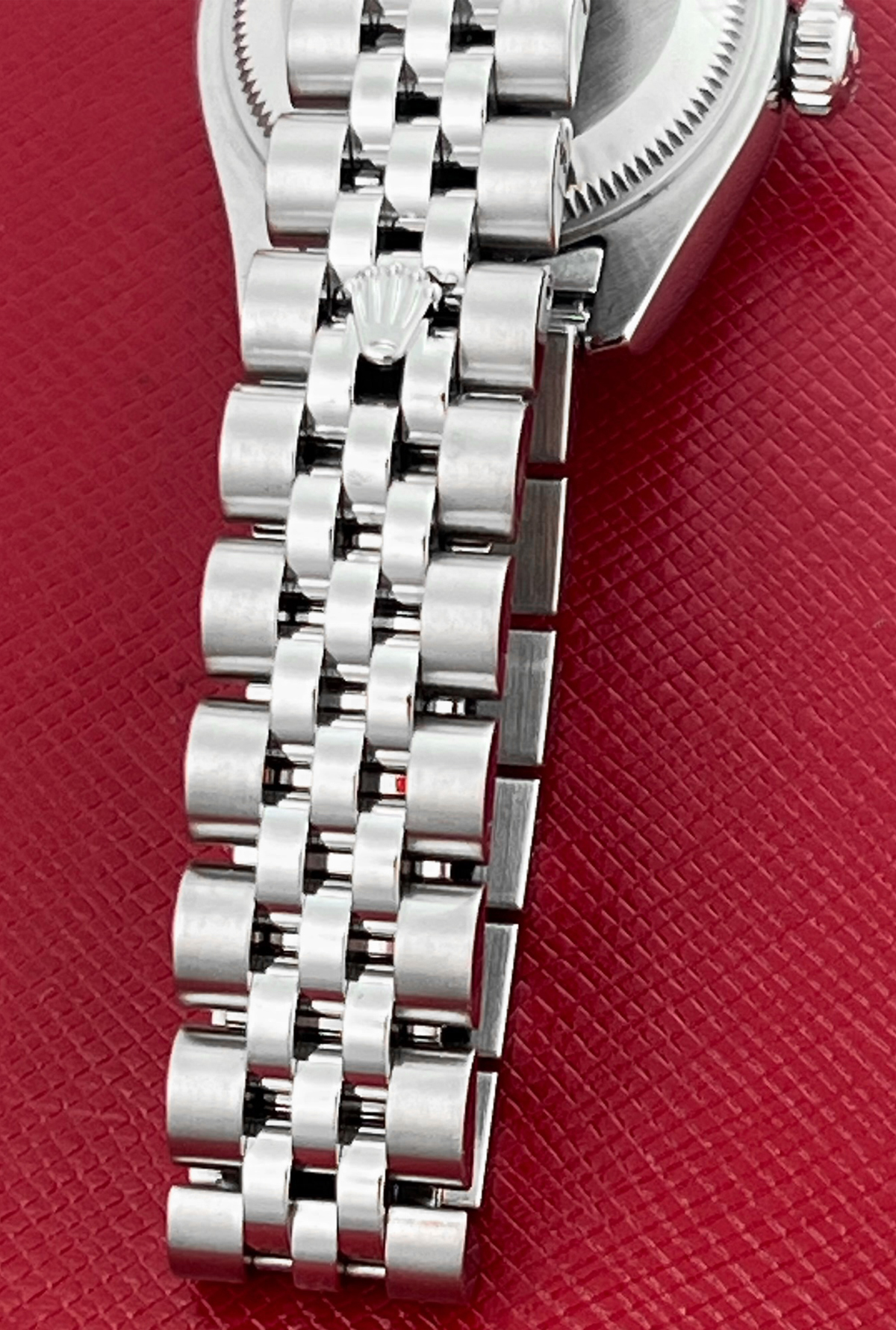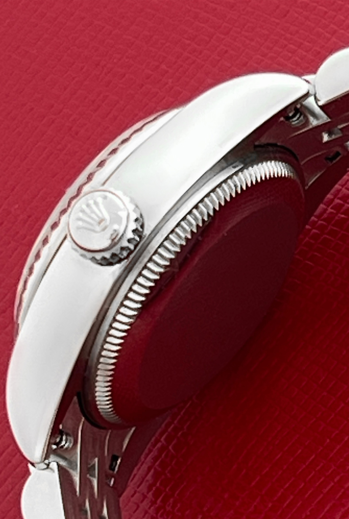 Case Material: Stainless Steel case with 18k White Gold fluted bezel (26mm dia.)