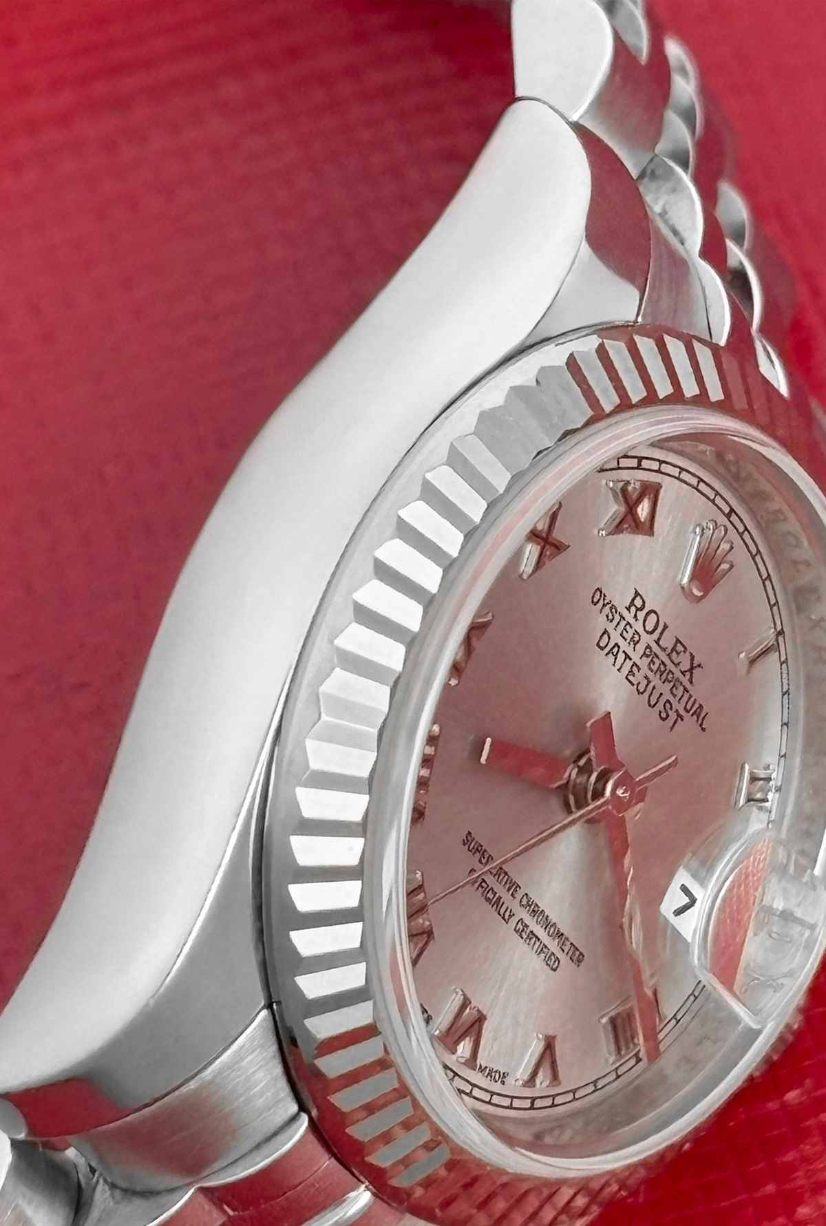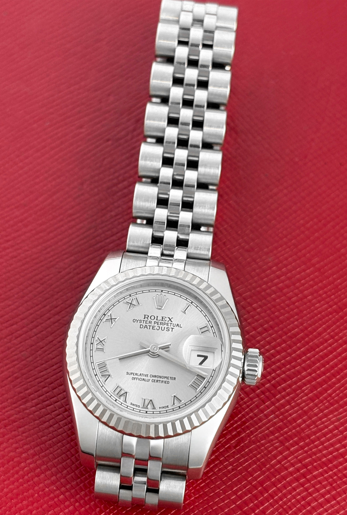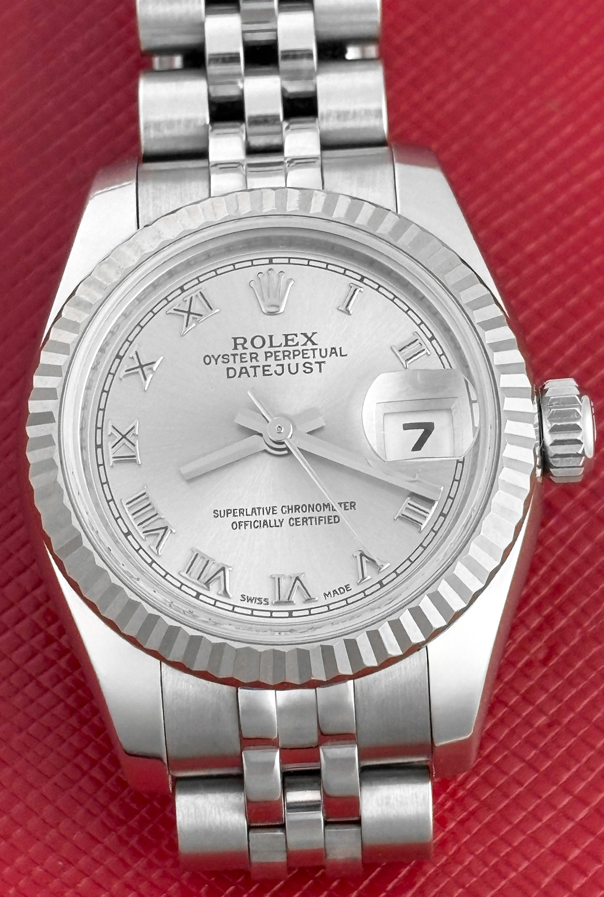 Case Material: Stainless Steel case with 18k White Gold fluted bezel (26mm dia.)