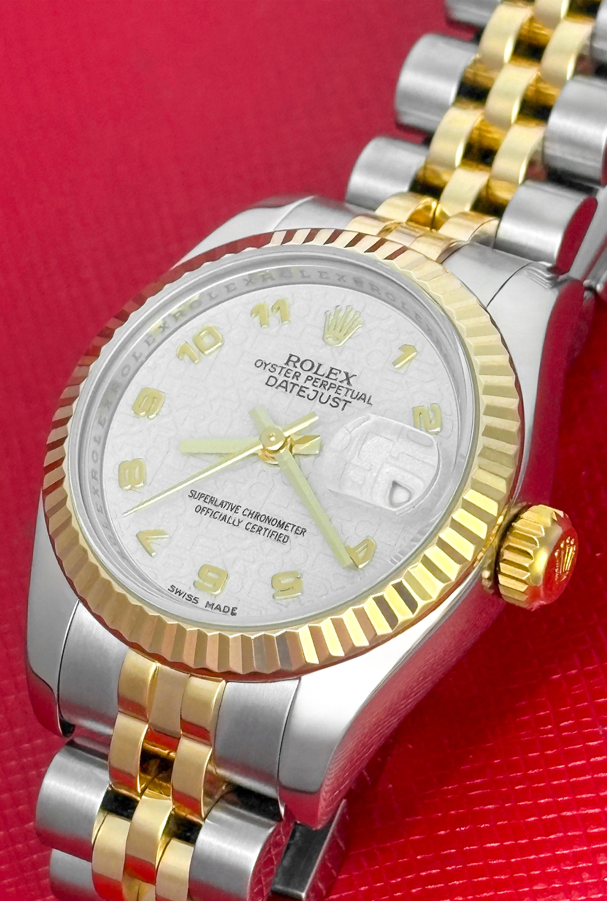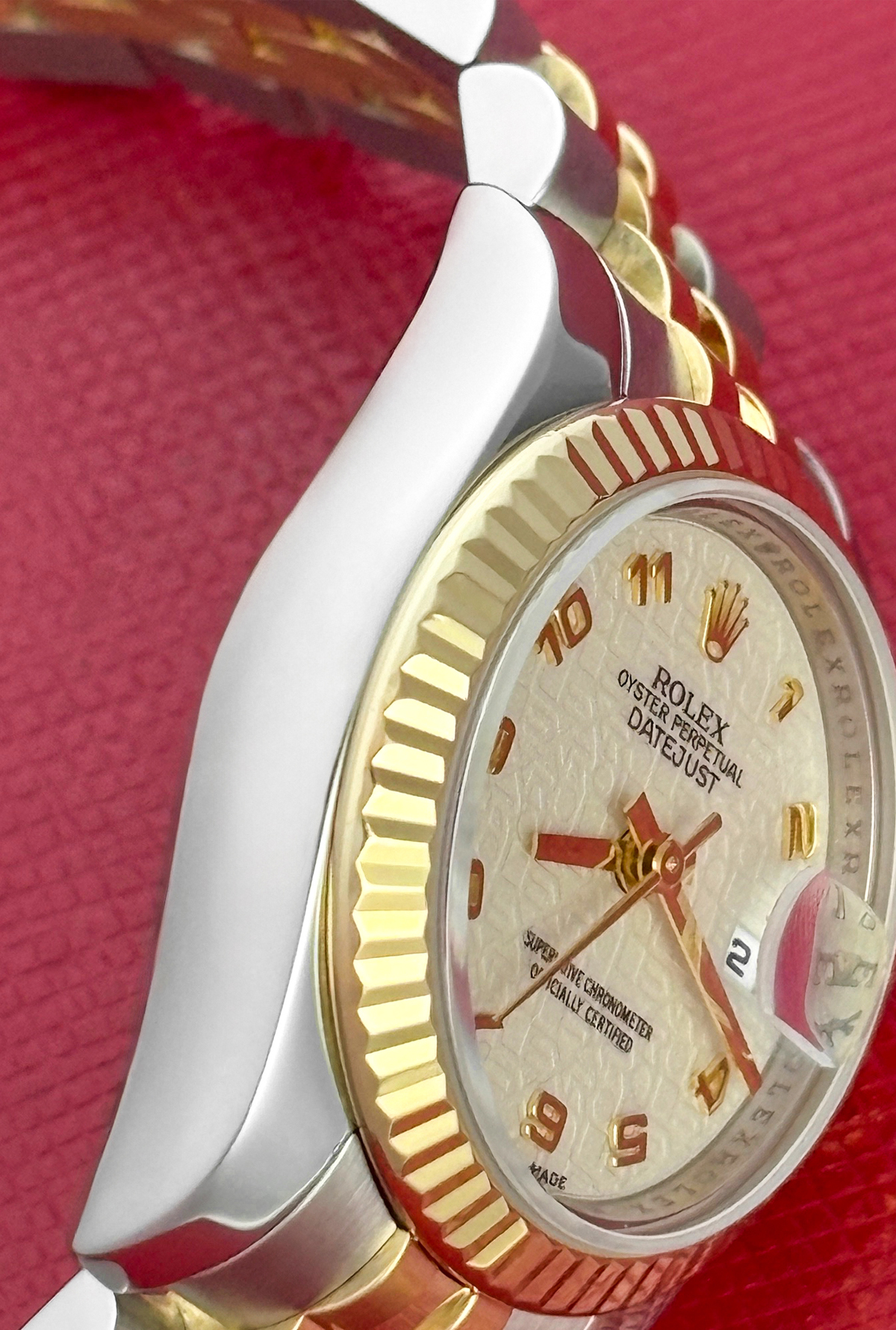 Dial: Ivory Rolex Jubilee Dial with yellow gold Arabic numerals