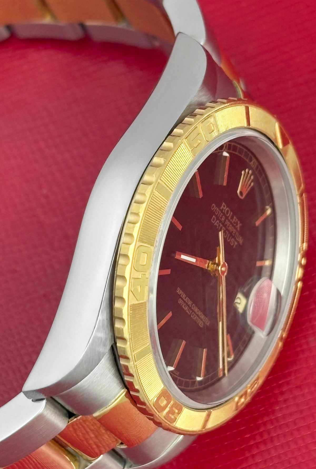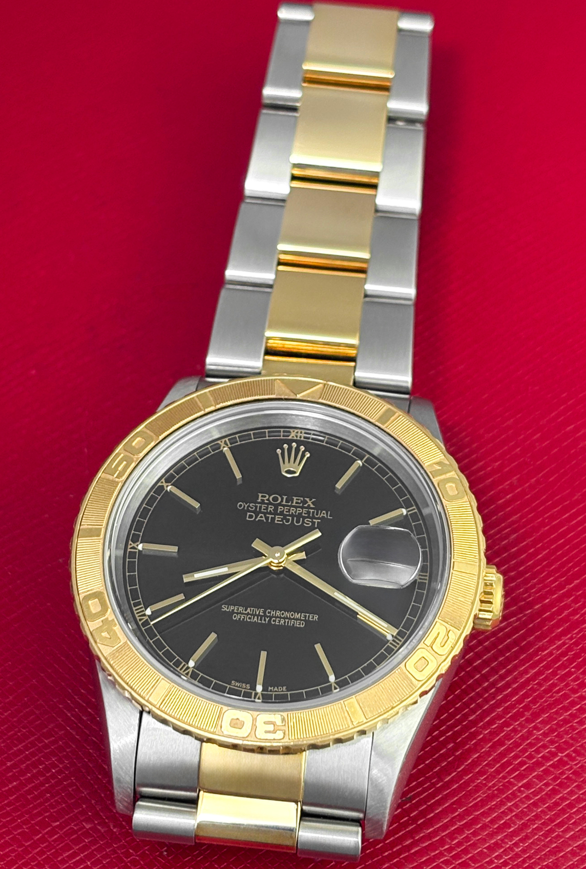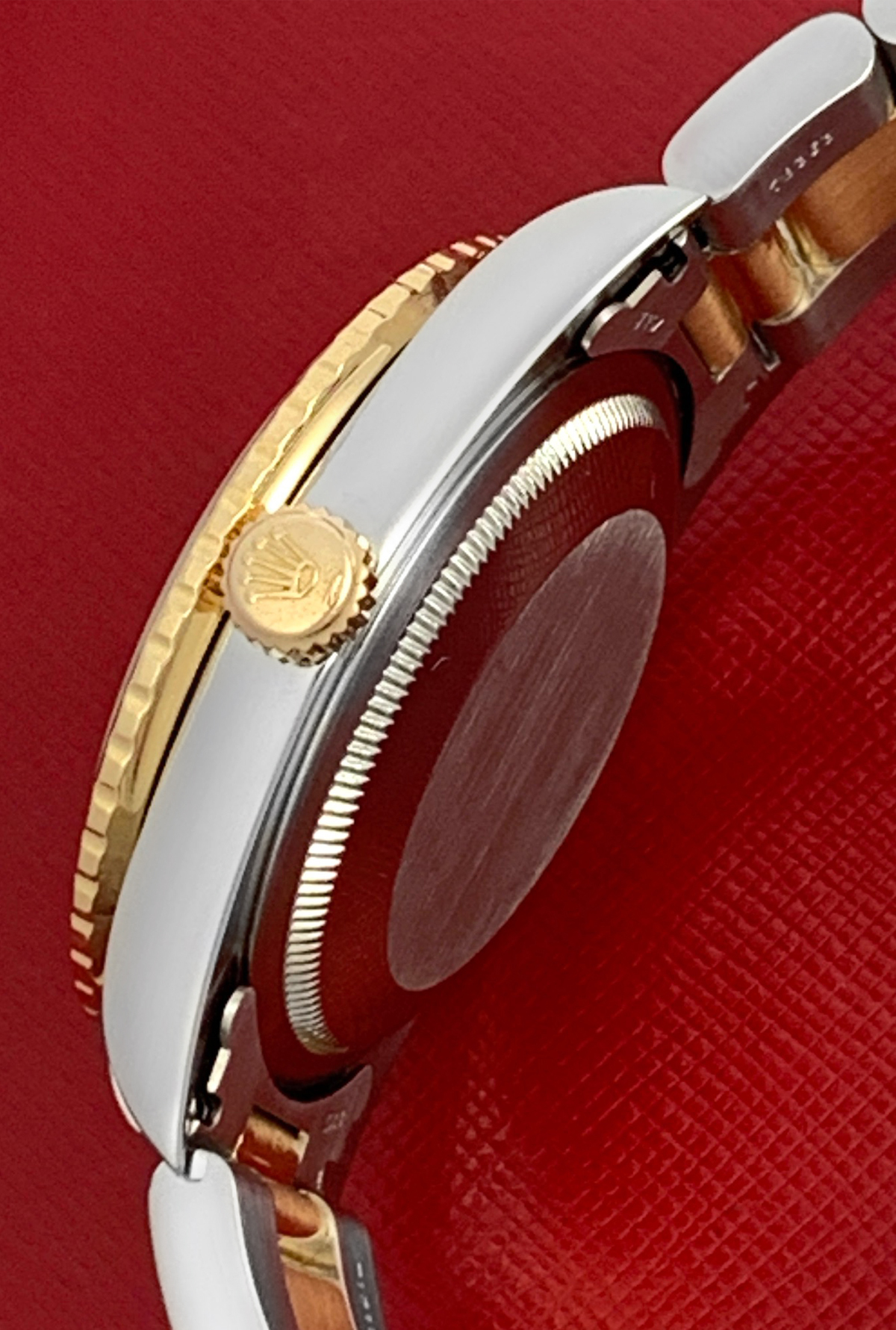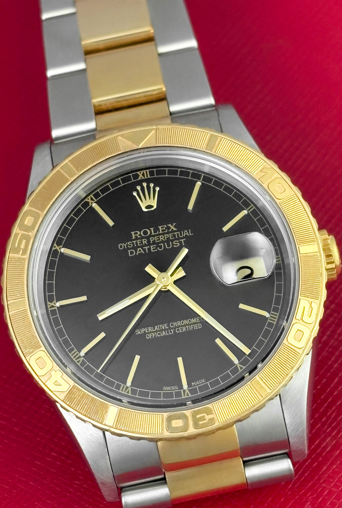 Case Material: Stainless Steel case with 18k Yellow Gold Thunderbird bezel (36mm dia.)