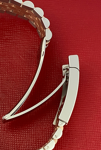 Case Material: Stainless Steel case with 18k Everose Gold domed bezel (41mm dia.)