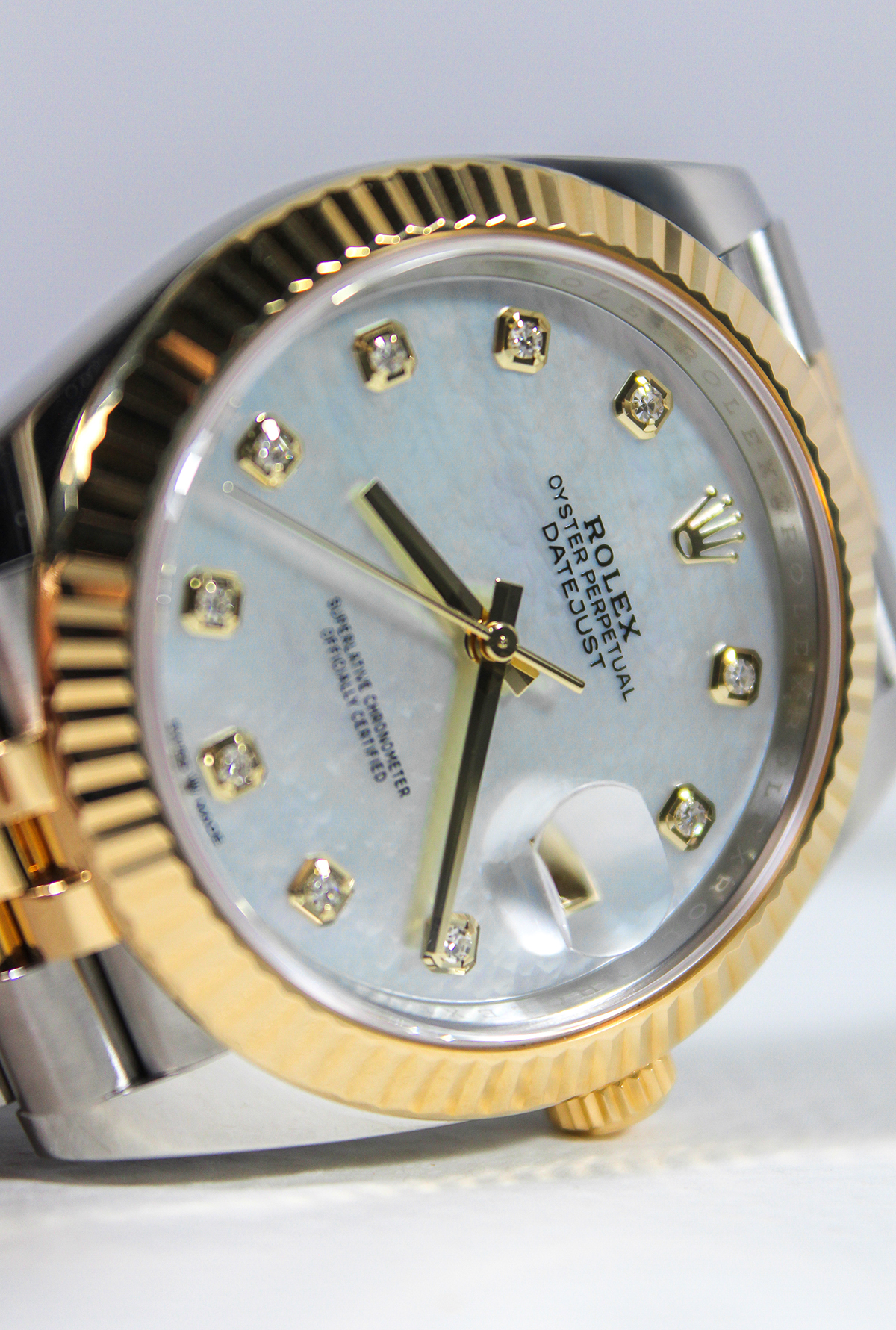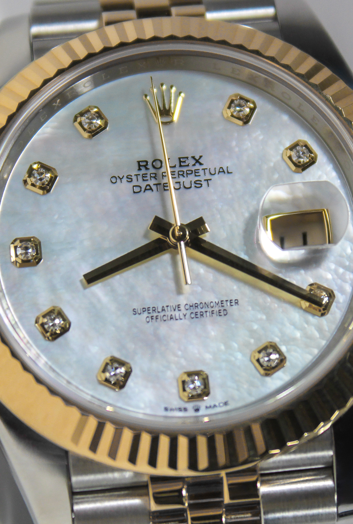 Dial: Rolex Mother of Pearl Dial with Rolex Diamond hour markers