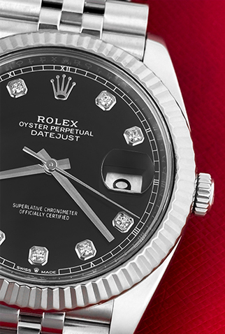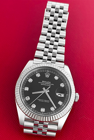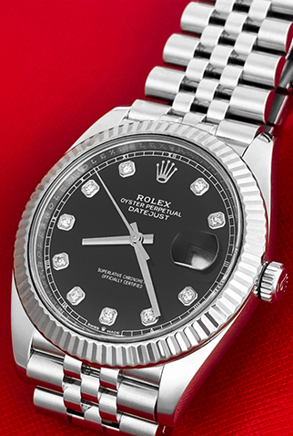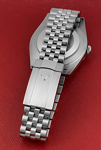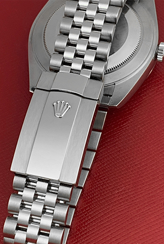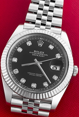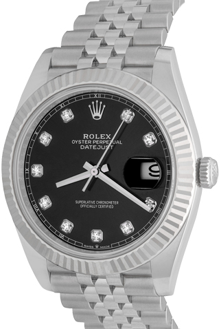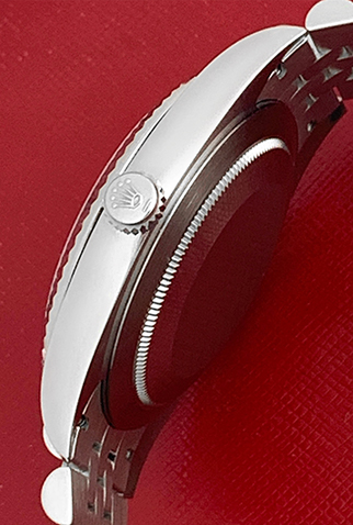 Case Material: Stainless Steel case with 18k White Gold fluted bezel (41mm dia.)