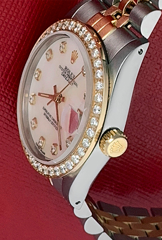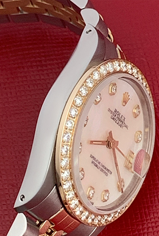 Case Material: Stainless Steel case with 18k Yellow Gold custom Diamond bezel (31mm dia.)