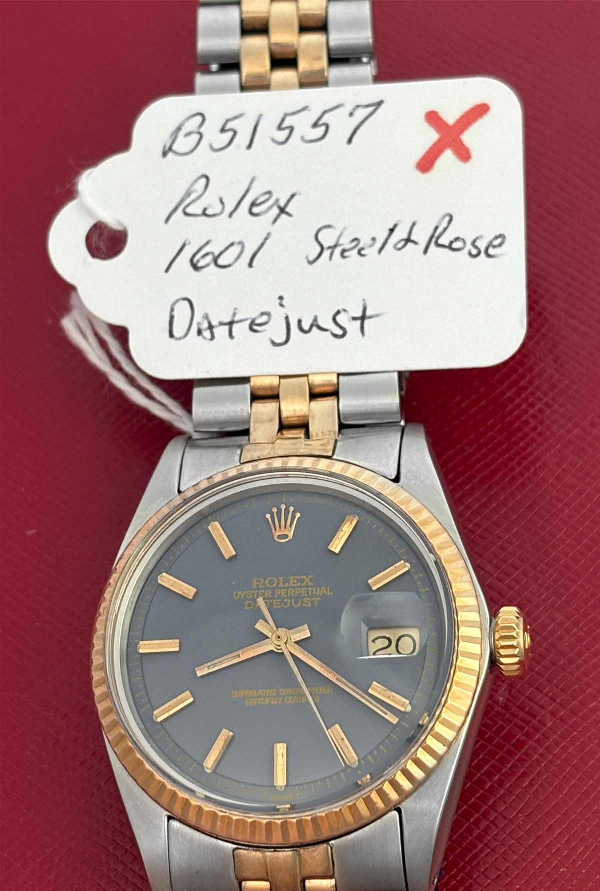Case Material: Stainless Steel case with 14k Rose Gold fluted bezel (36mm dia.)