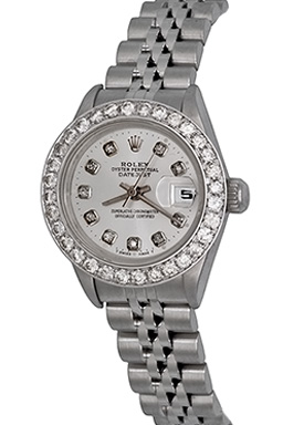 Case Material: Stainless Steel case with custom 18k White Gold 1.6 ct. Diamond bezel (26mm dia.)