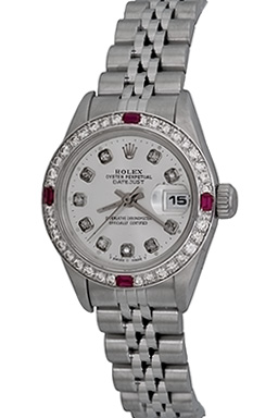 Case Material: Stainless Steel case with custom 18k White Gold Diamond and Ruby bezel (26mm dia.)