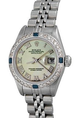 Case Material: Stainless Steel case with custom 18k White Gold Diamond and Sapphire bezel (26mm dia.)