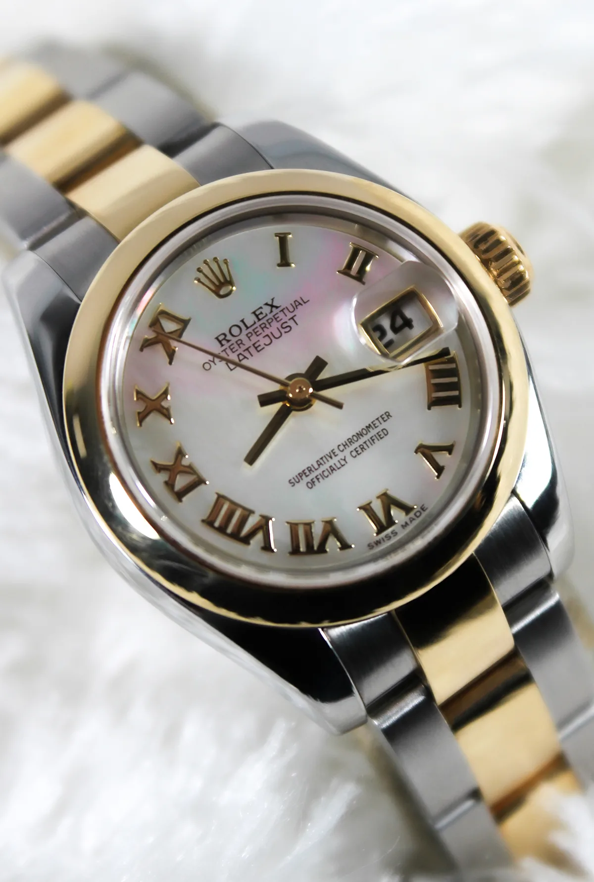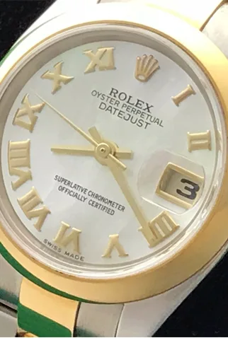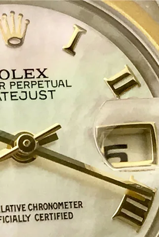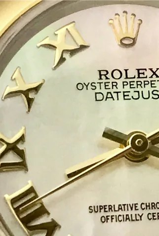 Dial: Rolex Mother of Pearl Dial with yellow gold Roman numerals