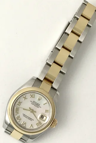 Case Material: Stainless Steel case with 18k Yellow Gold smooth bezel (26mm dia.)
